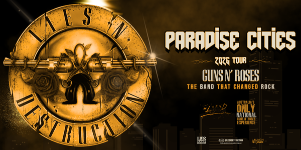 Lies N’ Destruction are Australia’s only nationally touring Guns N’ Roses experience, delivering the power, danger and swagger that changed rock forever. Fresh off two national tours in 2024 and 2025, the band continues to go from strength to strength, earning a reputation as Australia’s most authentic Guns N’ Roses experience. In 2026, they return with the Paradise Cities Tour. This is nostalgia done right, loud, dangerous and alive. Each show features two massive sets, delivering close to three hours of iconic hits, fan favourites and deep cuts. No shortcuts, no dialling it in, just high-energy, no-holds-barred rock ’n’ roll.