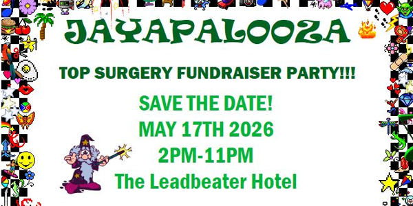 Jayapaloosa is an all day extravaganza aiming to raise funds for our beloved friend Jay to receive top surgery. Jay has touched the hearts of many people in our community, and we are giving back with a stacked lineup of local acts, artists markets, on site tattooing and much, much more! All proceeds from this event will directly benefit Jay on his journey and any money raised after our target is reached will be paid forward to other community organisations who support trans people in receiving their gender affirming care! Join us from 2-11pm on the 17th of May for a huge day of boogieing down to the best local music for a great cause!